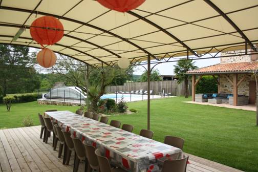 Une salle commune de 45 m2 avec cuisine équipée de 15 m² ainsiqu’une Pergolas couverte avec barbecue, plancha permet la prise de vos repas en famille.